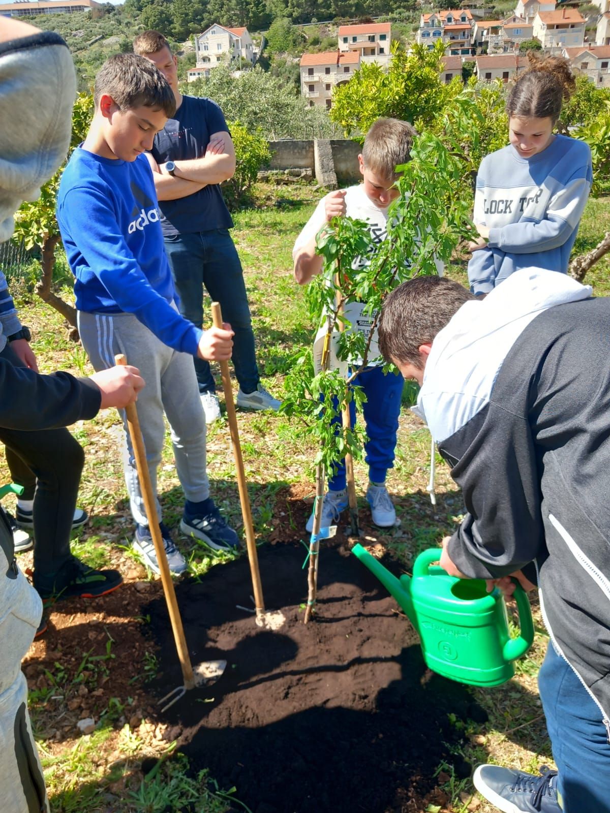 Afterwards, guests participated in a culturally rich local activity: an olive-picking contest. This took place in the orchard of “Vladimir Nazor” School, where participants learned about the importance of traditional and sustainable agriculture. In rural areas of Croatia, olive trees are a basic resource, and the olive harvesting process provided a unique experience. Olive picking was not only a manual activity but also an educational one, offering insight into the hard and dedicated work needed to support the local economy and produce high-quality food without harming local ecosystems.